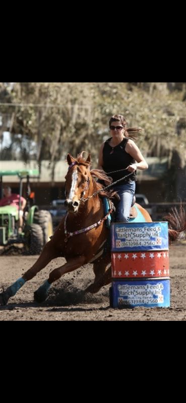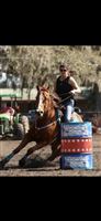 5 year old coming 6 came off the track clean with 20k in winnings. Now started on barrels been entered 3 times. Placed in 3D all three times just loping thru Very broke sweet gelding. Low in the pecking order here. He can be pastured with anyone.Very fast and willing going to be a winner. Vet checks welcome. Please text or call.
