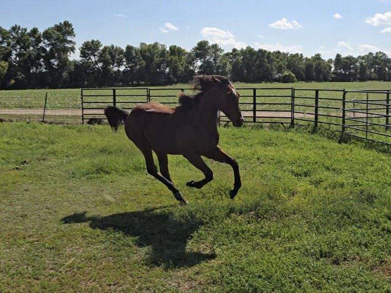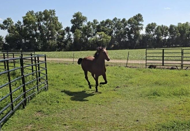 Born May 17, 2024, and his barn name is Cash. He is really good looking with a nice head and big hips. He stands quit when tied, eats grain, likes being touch all over, you can pick up his feet, and stands while being trimmed by a farrier. He also loves being sprayed with a hand sprayer for flies. When I raise a colt, I start tying them up early and also start putting a pony saddle on them after they are a month old. He’s had the pony saddle on while my 4-year-old grandson sat on him when the colt was younger. He’s been led by my grandsons.
