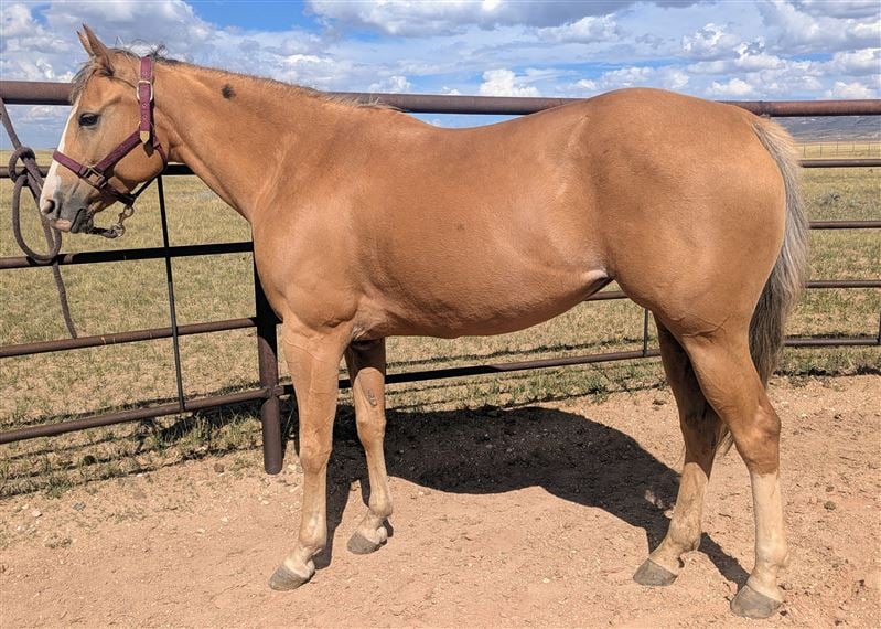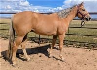 'Dolly' is ready to be your number 1. She is patterned, confident, more of a push style, hunts the barrels and loves to work. She measures about 15 hands with a more petite frame. I think she would suit an experienced youth very well. She is NOT a dead head, she has a lot of gas and she wants to use it. She lopes around on a loose rein and is very soft mouthed, I have been working her in a hackamore. I do not use a whip or spurs on her, she doesn't need it. She is coasting through 3D times right now, no exhibitions but she hasnt figured out how to really open up. She is one of those mares that wants to be perfect all the time and tries hard.