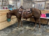 This 17-year-old mare is as solid and dependable as they come. She’s been running consistently in the 2D/3D locally for the past year, and was previously with a cow horse trainer for two years. She’s quick, gritty, cowy, and gives 110% every time you point her in a direction. She’s the kind of horse who will always try her heart out.