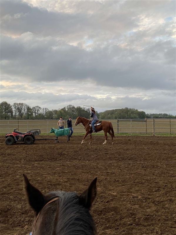 We haul to Arizona in the spring & team rope, heading side. He’s not finished but been doing it nice & easy for years. He's got low miles but been around a lot. No need to time only at all.