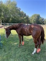 This colt has all the class and personality you could ask for. He is easy going, quiet minded, and quick to learn. Just got back from 45 days professional training - started slow and correct. Rides great in the arena and on trails, has rounded up cattle, and has been hauled to rodeos. Goes over tarps, and through obstacle courses. Bathes, stands for farrier, and loads great.