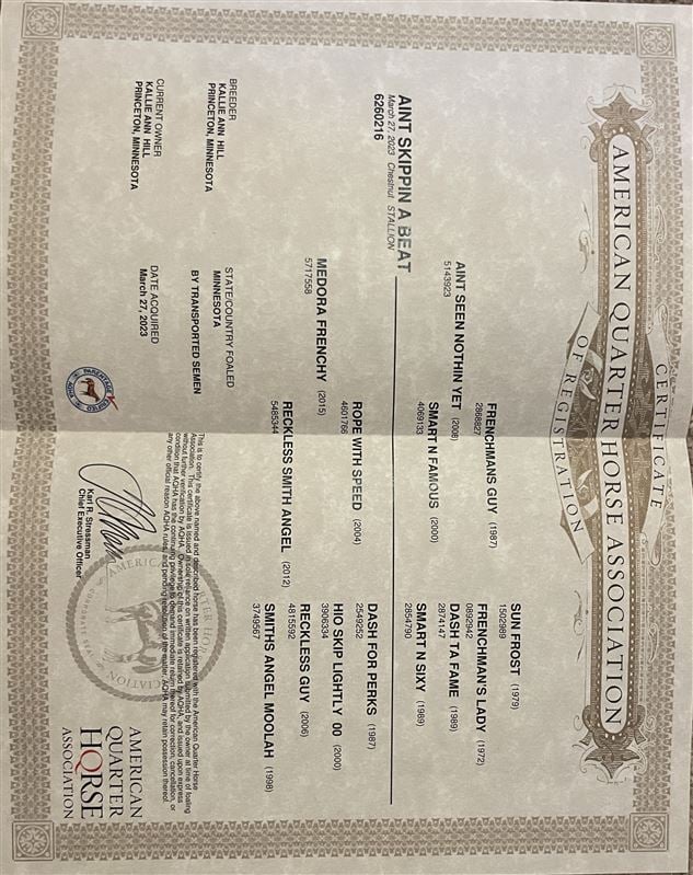 2023 Sorrel Colt by Aint Seen Nothin Yet and out of a Rope with Speed mare.