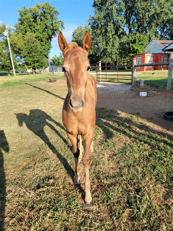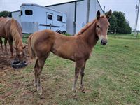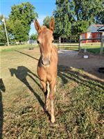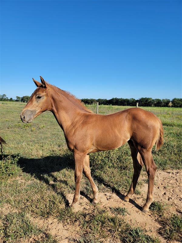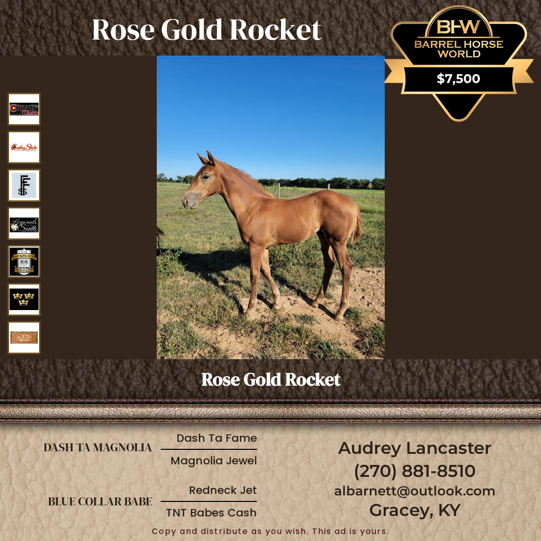Rose Gold Rocket (APHA pending) aka Mara is an APHA filly born May 30, 2025. She is paid in full to Future Fortunes, Triple Crown 100, and qualifies for PBRIP money. She is eligible to be paid in to other regional incentives if desired. She will be weaned in November when I get back from NBHA World Show. Mara is bred to the hilt to make a jam up rodeo or open horse in the barrels and poles. She has excellent conformation and a friendly disposition. She has her momma's fire and loves to stretch out and run in the pasture.