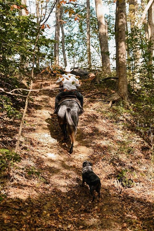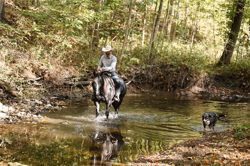 One of Steel’s best qualities is his versatility with riders. He has been ridden by every level of rider, from confident hands to those still learning, and he’s always willing to “take a joke” without holding it against you. That steady, forgiving temperament makes him the kind you can put your trust in. Steel is also a great size—easy to mount and dismount, yet sturdy and strong enough to carry an adult with ease. His kind and gentle temperament makes him safe to be around both in and out of the saddle, and his straightforward, no-nonsense attitude makes him the kind of horse that settles in anywhere. He hauls, ties, and stands for the farrier without a fuss, making him as easy to manage as he is to ride.