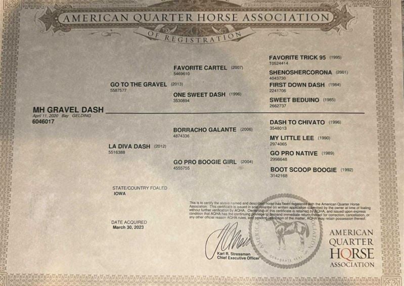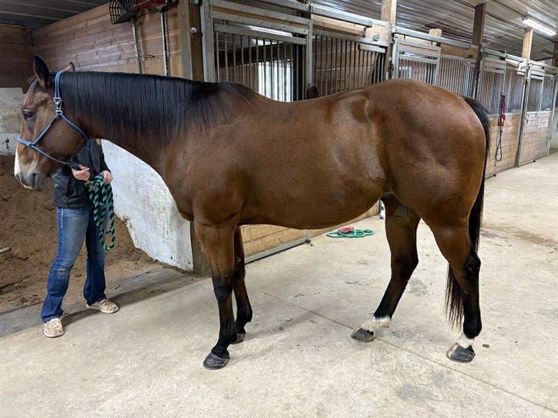 Meet MH Gravel Dash, affectionately known as Stoney — a striking 5-year-old AQHA gelding standing 15.3hh with exceptional athleticism, heart, and versatility. Stoney is sound, well-mannered, and ready to go in any direction you choose.