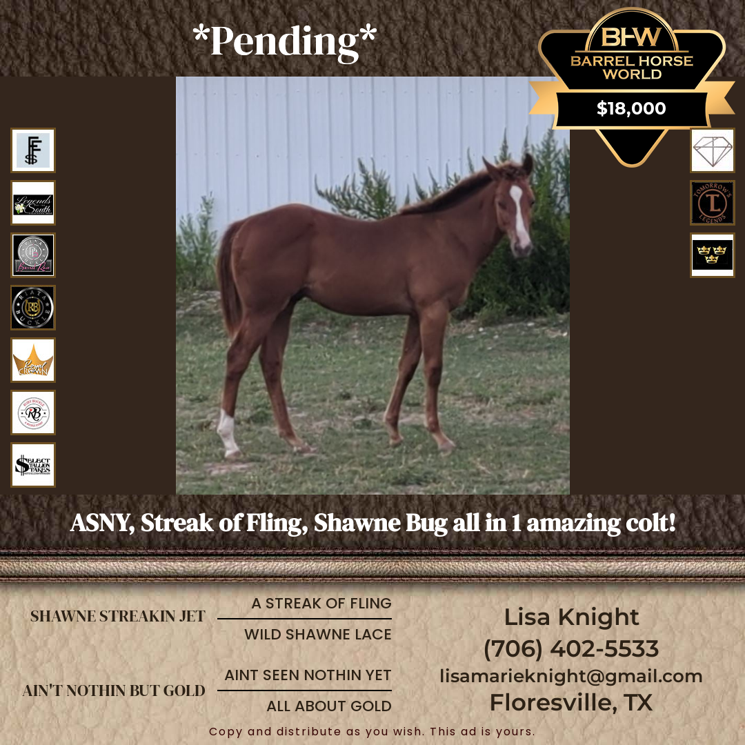 This filly is paid into The Diamond Classic, Tomorrow’s Legends & Top Shelf. She stands just a hair shy of 14.3 and is ready to start your way!