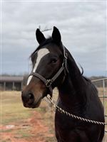 Off track 16 hand bay AQHA gelding! Placed 1/2D youth and jr sra rodeos. Push style and runs both directions! Great for any level rider! Will only go as fast as asked! No vices! Loads/clips/baths/shoes great! First to the gate! Sw... (Hits 311)