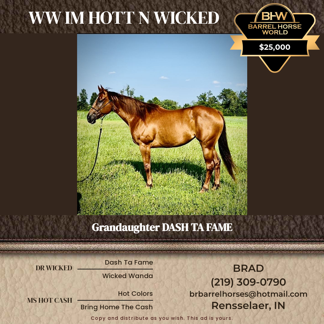 5-year old - Hottie will give you her hip, shoulders, ribs, face SUPER BROKE with a lot of grit. She has Hottie will give you her hip, shoulders, ribs, face SUPER BROKE with a lot of grit. She ran in the 1D all winter and has run from 1D-3D f... (Hits 1868)