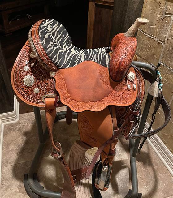 Circle Y Ultimate Starlight Zebra Stingray 14 inch. Like Brand New- Kept Inside. Very clean!! Breast strap included. Buyer pays shipping